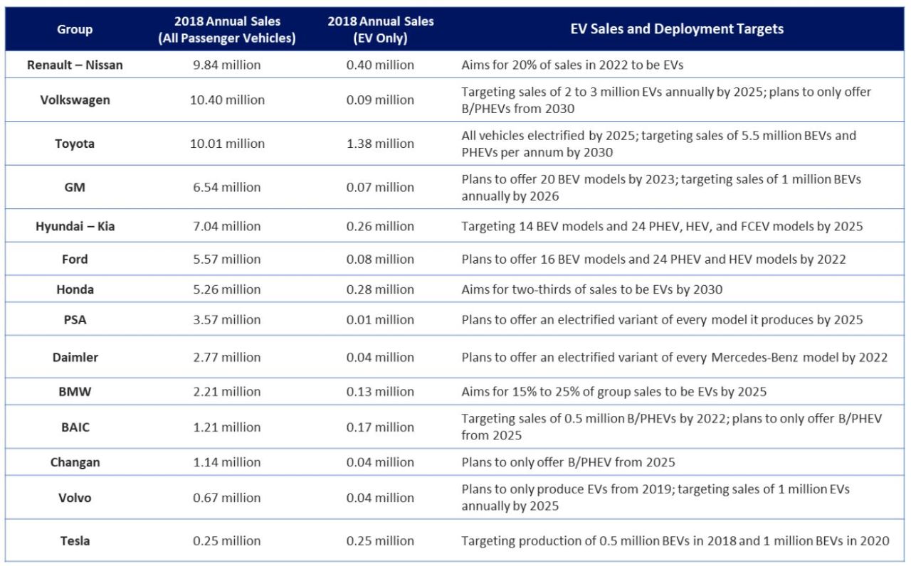 Virtually all the world's leading automakers have announced ambitious EV production, sales and deployment targets (Source. Adamas Intelligence, Marklines, EV-Volumes, CAAM)