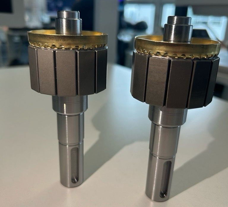 Right: Two Siemens SIMOTICS servomotor rotors, one of which was produced utilising recycled NdFeB magnets manufactured by HyProMag.