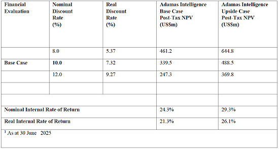 These are projectlevel economic assessment outputs used to evaluate potential economic viability and do not constitute corporatelevel forecasts or guidance. Actual results may differ materially if Study-level Assumptions change.