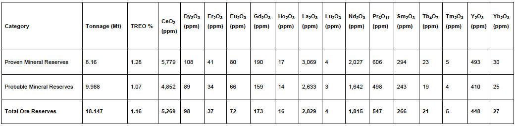 - For the purposes of assessing reasonable prospects for economic extraction and cut-off grade, metallurgical recoveries were applied to individual rare earth oxides. The average total rare earth oxide metallurgical recovery is 39.6%.