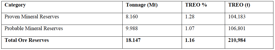 The DFS is based on a conventional open pit contract mining operation, feeding mills, flotation and hydrometallurgy plants on site in Malawi to produce a MREC, with an operating life (mining and processing) of 18 years. The Company believes there is potential to increase the mine life given the additional Inferred Resource, and the potential to expand the Mineral Resource. The DFS supports the declaration of a Proven and Probable Mineral Reserve Estimate of 18.1 million tonnes grading 1.16% TREO.